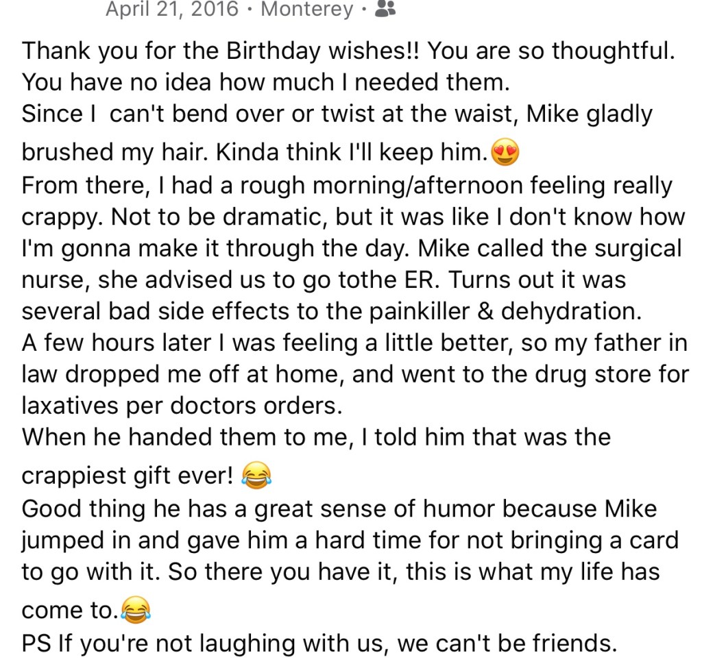 Like the one in 2016, I had gallbladder removal surgery two days before my birthday + ended up in the ER on my 36th birthday.